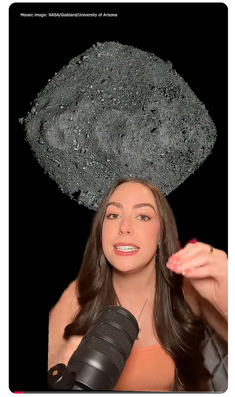 "SHORT" of the MONTH: Our favorite science gal, "Astro Alexandra" is amazed that they found serpentine on asteroid Bennu. (Serpentine is a metamorphic rock formed when mafic rock (silicates high in Mg and Fe) mixes with seawater. On earth, serpentine is found mainly on the Mid-Ocean Ridges, plus a few places on the surface.) We were not surprised, Alexandra! Bennu is made of water, rocks and organic material that were spewed out by the Fountains of the Great Deep. https://www.youtube.com/shorts/stbcn0QB6C0